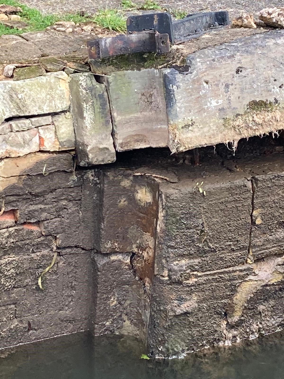 Morning all. Here’s an update for you on Southcote Lock 104 on the #KennetAndAvon. The 1st pic shows cracking below waterline which will require investigating before repair work can start. The 2nd shows that all the loose material has been removed from the damaged area.