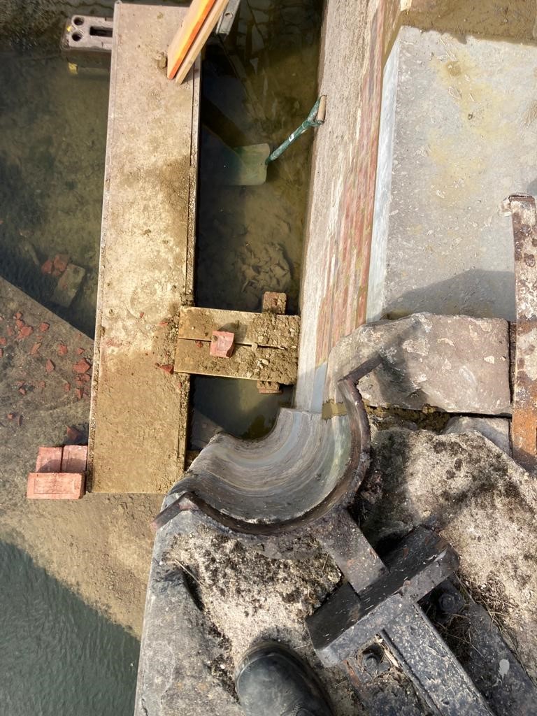 This is what’s going on under the water at the damaged Lock 104 on the #KennetAndAvon 1st pic shows the bottom of the gate resting on the bed when it should sit in a cup in which it rotates. 2nd shows some of the damage. 3rd – spectators!