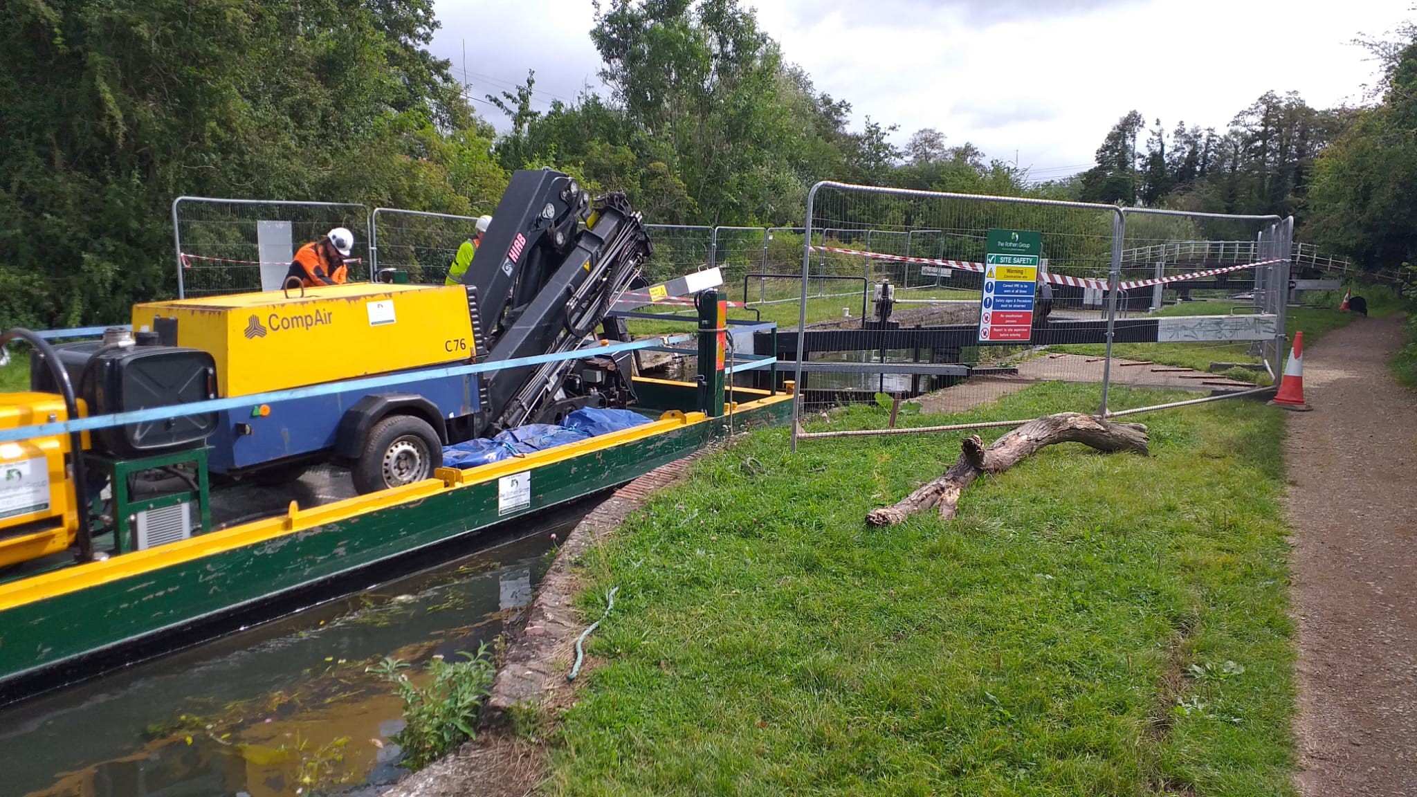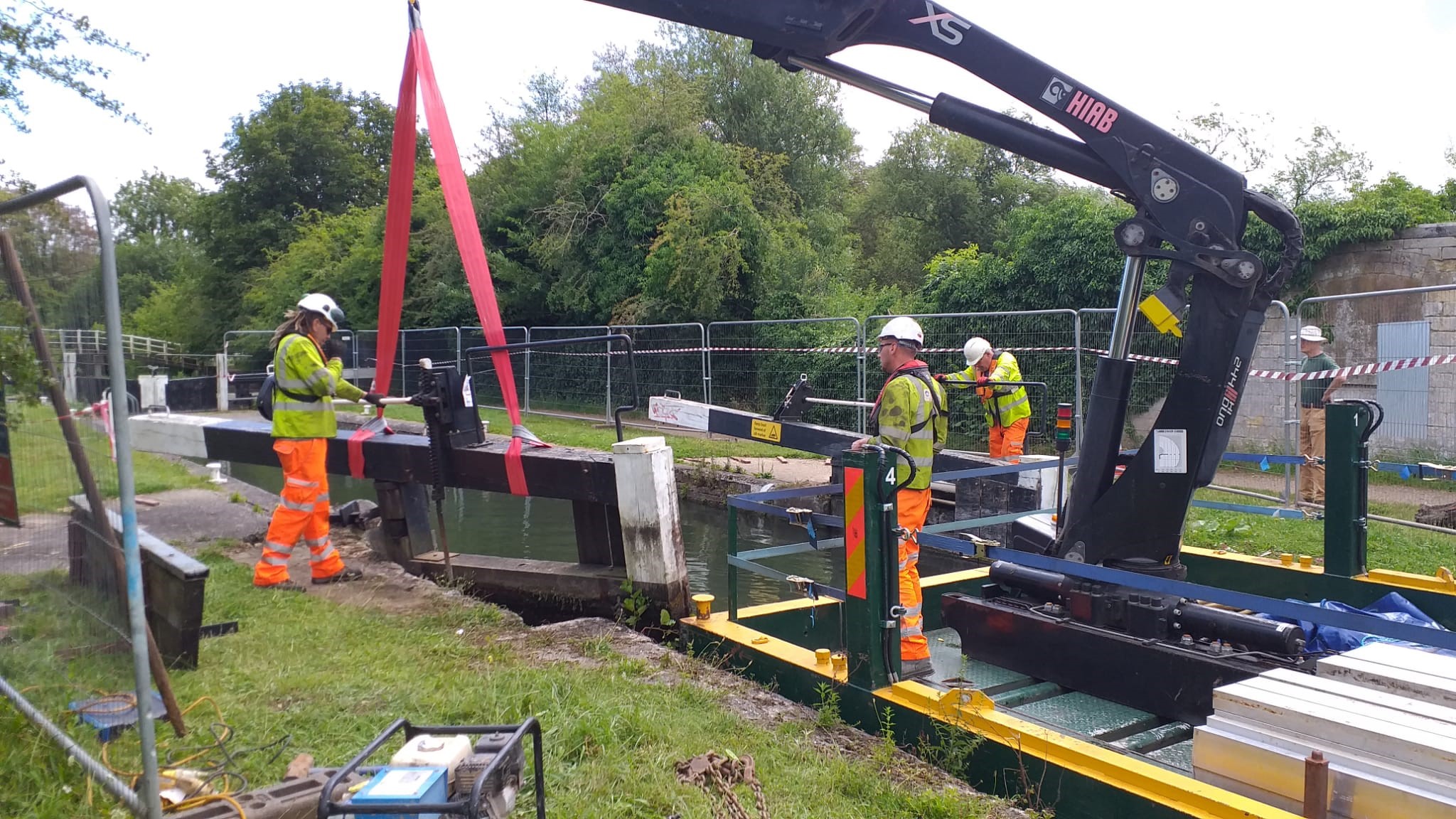 The set up for repairing Southcote Lock 104 is complete. The lock gate that was knocked out of position was lifted today. Good progress @TheRothenGroup